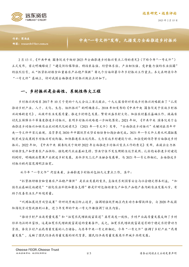 远东资信:中央“一号文件”发布,九措发力全面推进乡村振兴.pdf