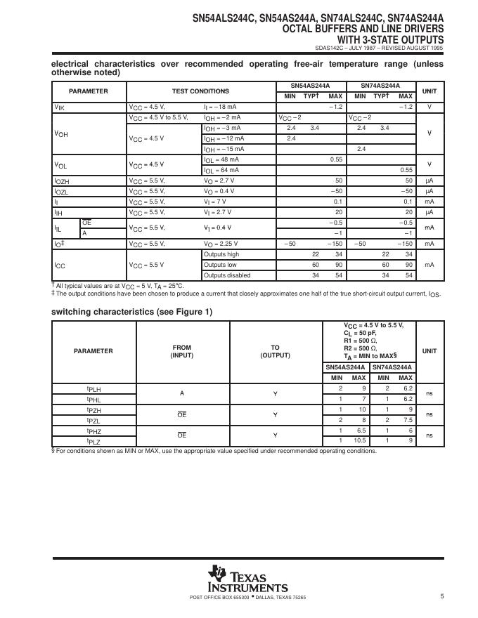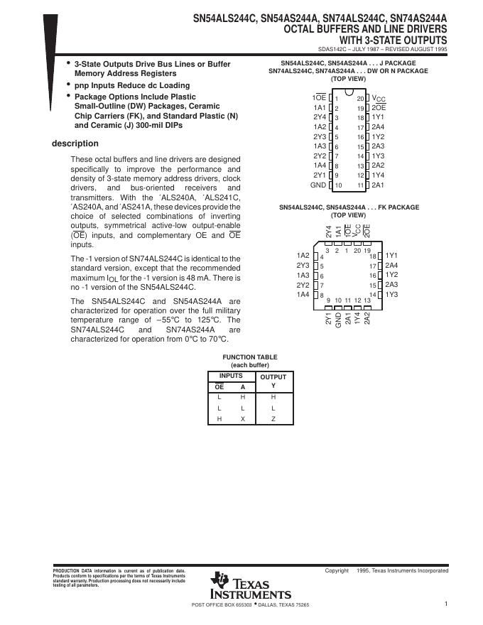 TEXAS INSTRUMENTS SN54ALS244C/SN54AS244A/SN74ALS244C/SN74AS244A 数据手册.pdf