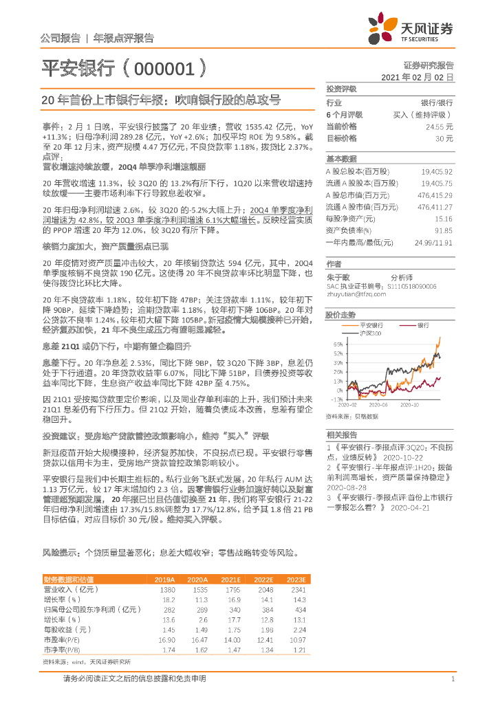 天风证券:平安银行(000001)-20年首份上市银行年报:吹响银行股的总攻号.pdf