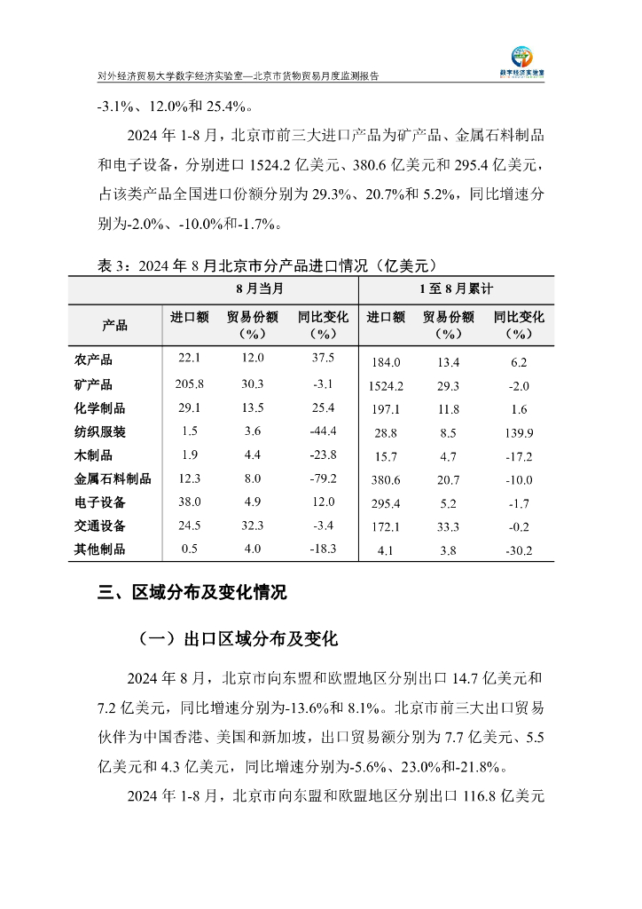 对外经济贸易大学:北京市货物贸易月度监测报告(2024年1-8月).pdf