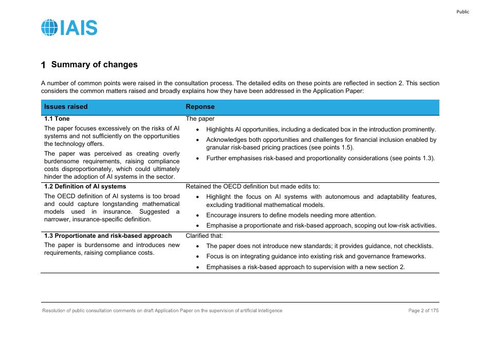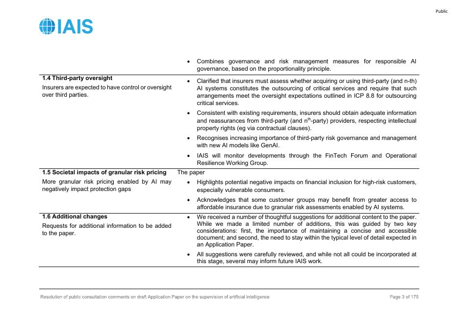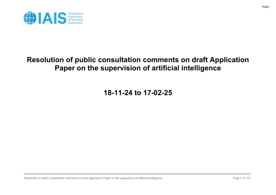 国际保险监督官协会(IAIS):2025年人工智能监管草案公众咨询意见的解决情况报告(英文版).pdf