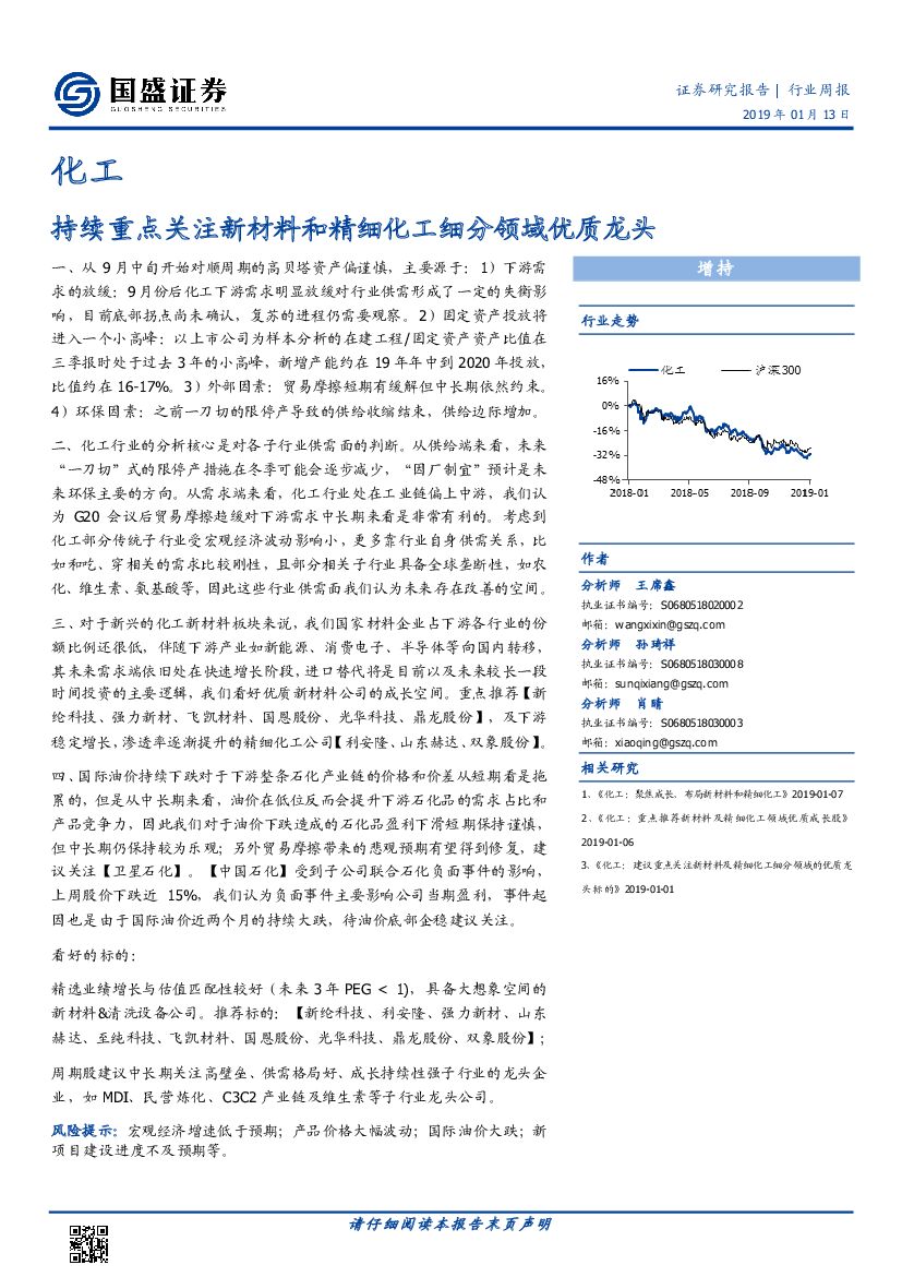 国盛证券:化工行业周报:持续重点关注新材料和精细化工细分领域优质龙头.pdf