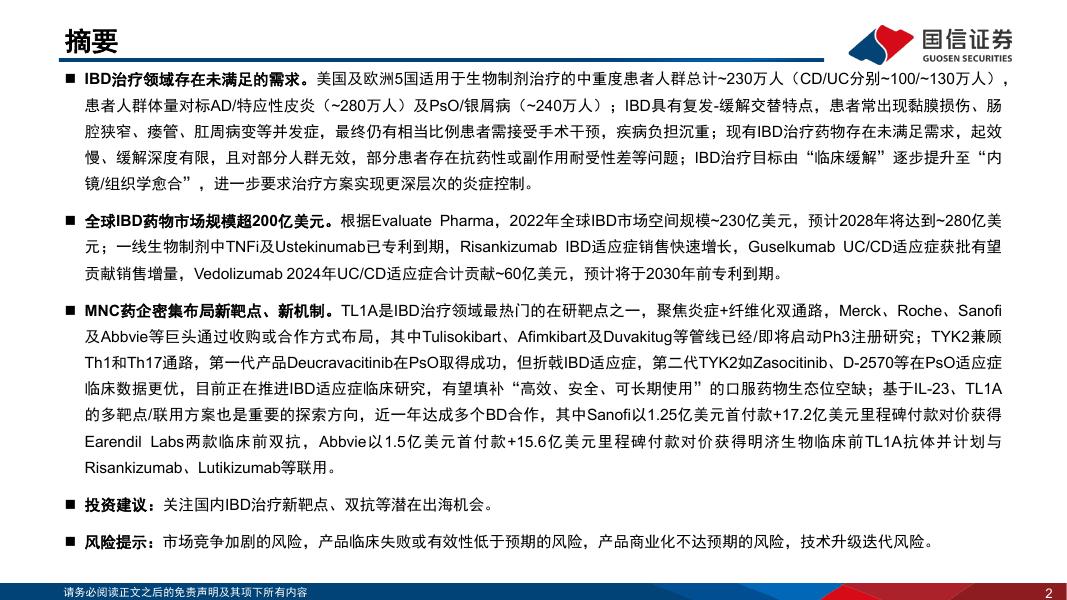 国信证券:创新药盘点系列报告(22):IBD治疗领域存在未满足的需求,关注新靶点、新机制.pdf
