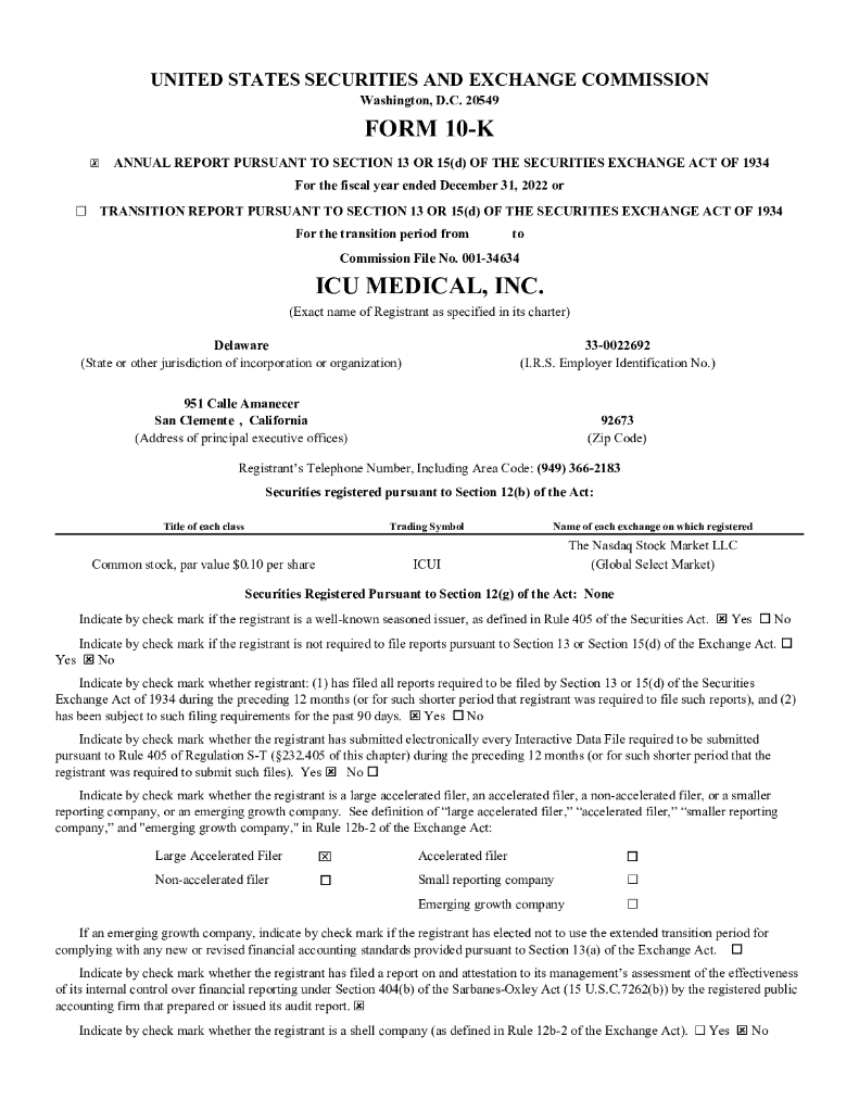 ICU Medical, Incorporated(ICUI)2022财年年度报告(英文版).pdf