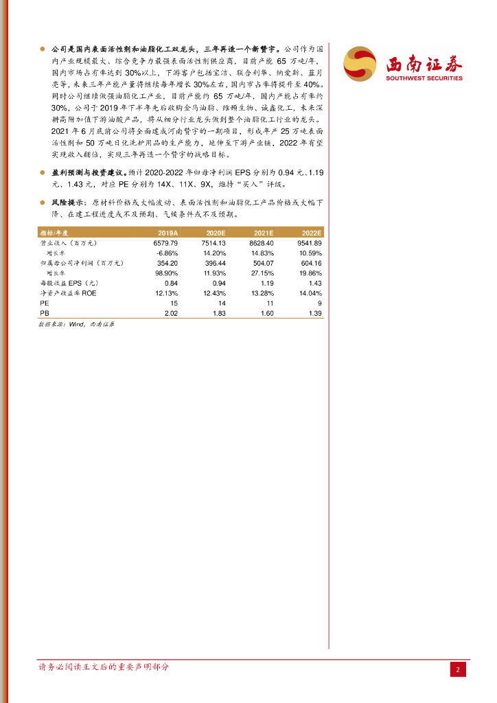西南证券:赞宇科技(002637)-年报一季报符合预期,看好油化日化龙头长期发展.pdf