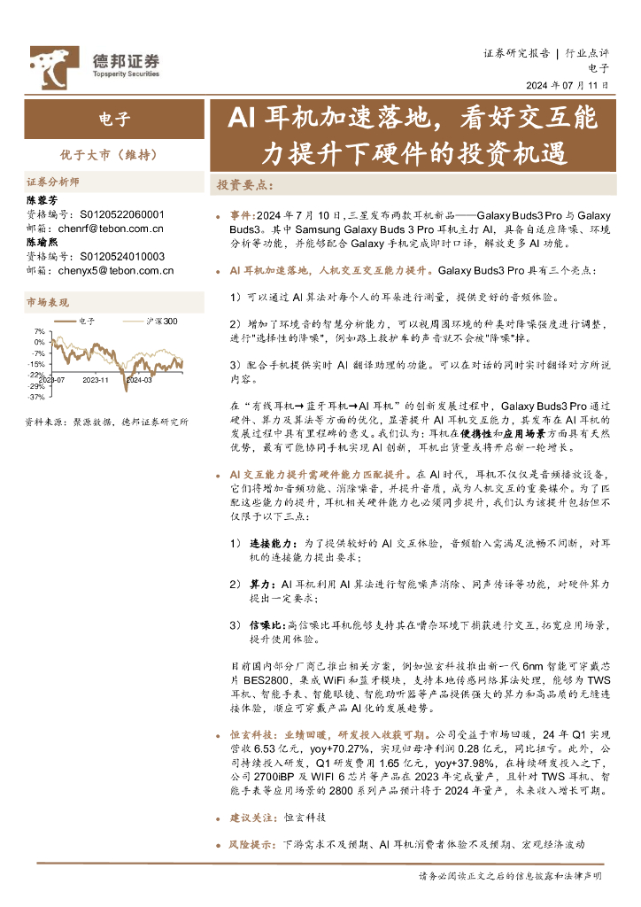 德邦证券:电子:AI耳机加速落地,看好交互能力提升下硬件的投资机遇.pdf