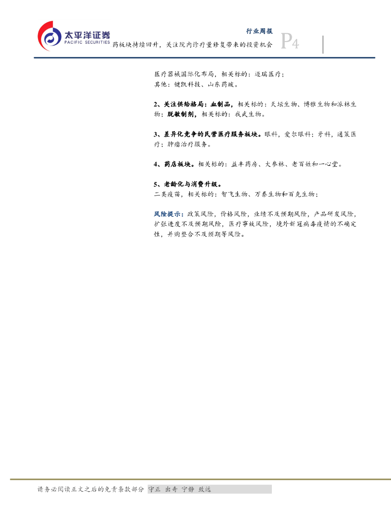太平洋证券:医药生物行业周报:医药板块持续回升,关注院内诊疗量修复带来的投资机会.pdf