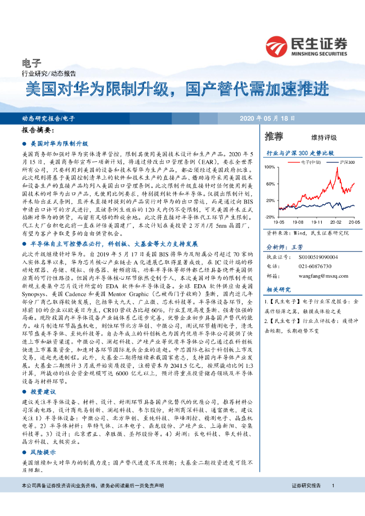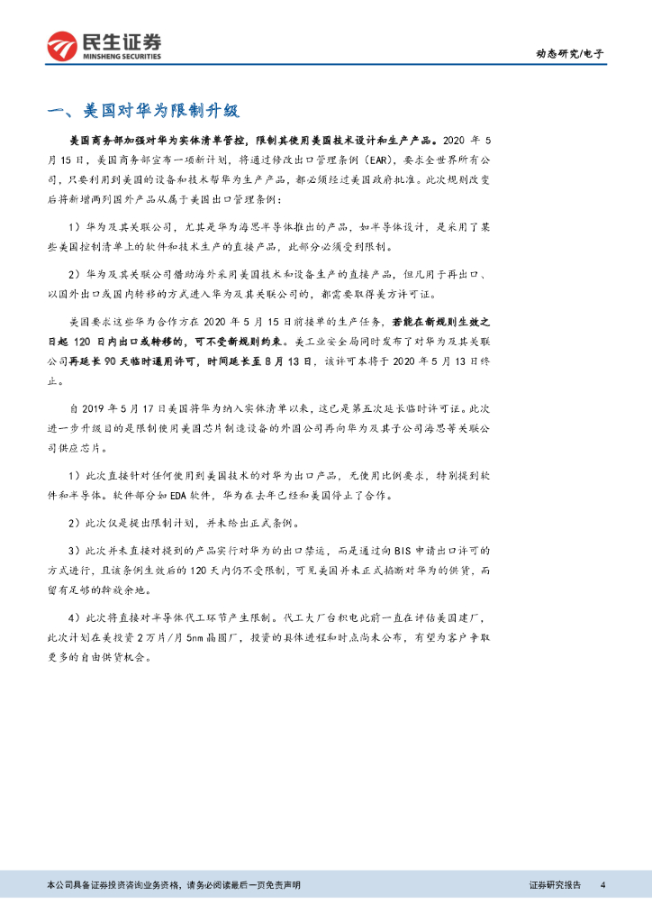 民生证券:电子动态报告:美国对华为限制升级,国产替代需加速推进.pdf