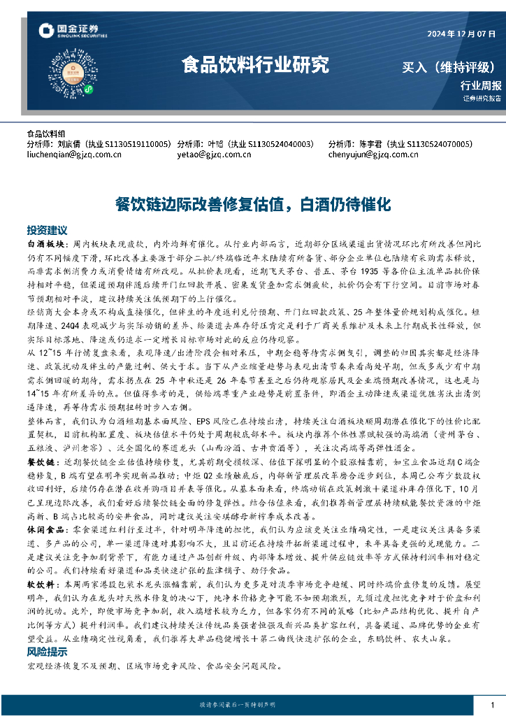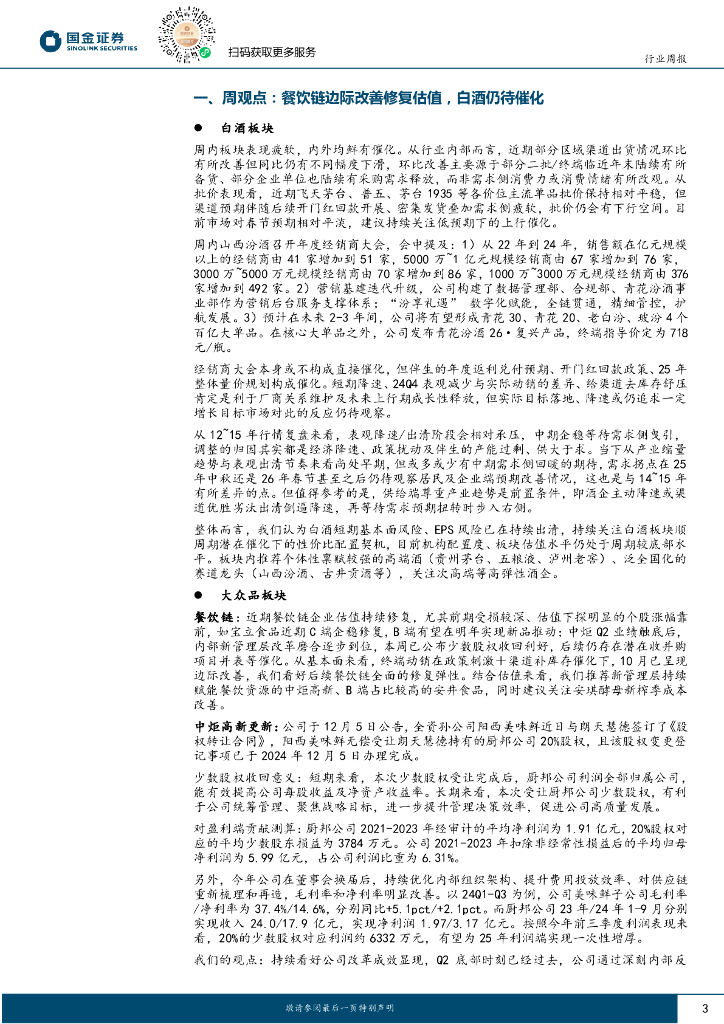 国金证券:食品饮料行业周报:餐饮链边际改善修复估值,白酒仍待催化.pdf