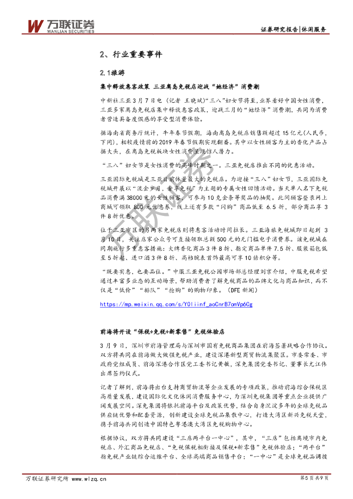 万联证券:休闲服务行业周观点报告:前海将开设“保税+免税+新零售”免税体验店.pdf