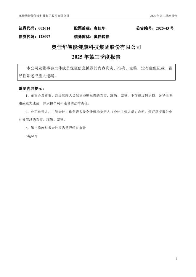 002614-奥佳华:2025年三季度报告.pdf
