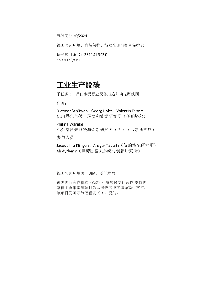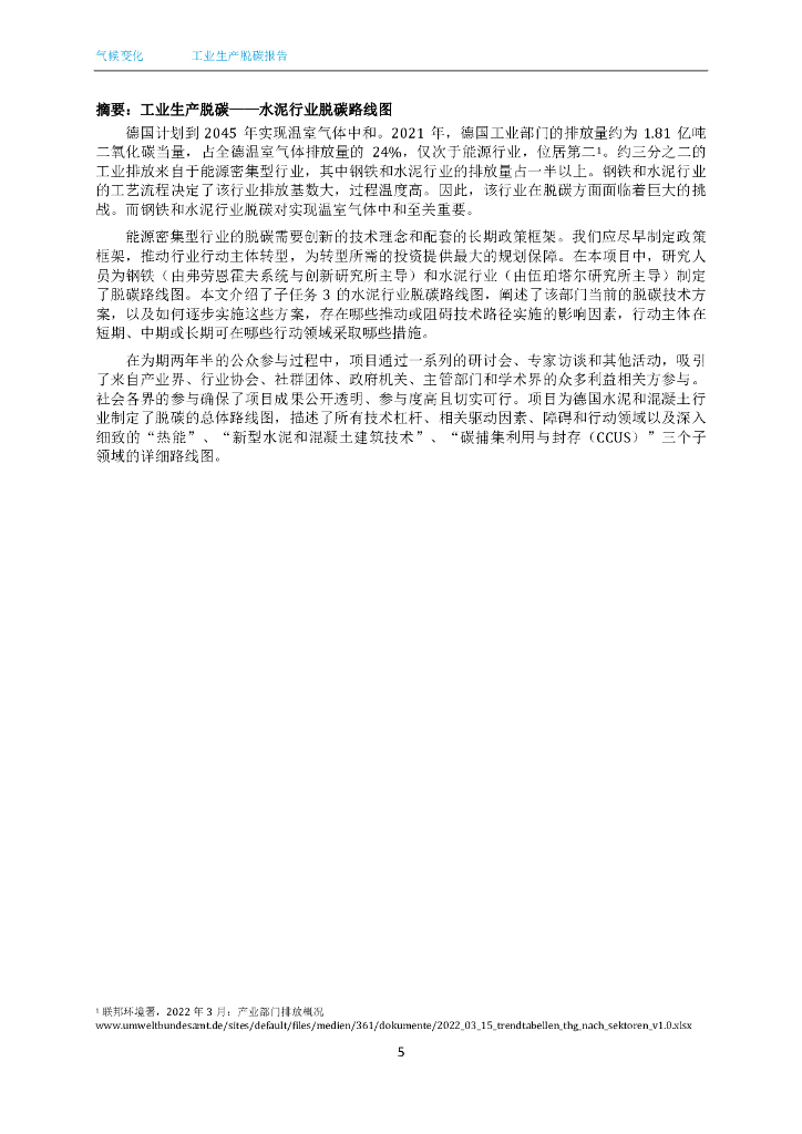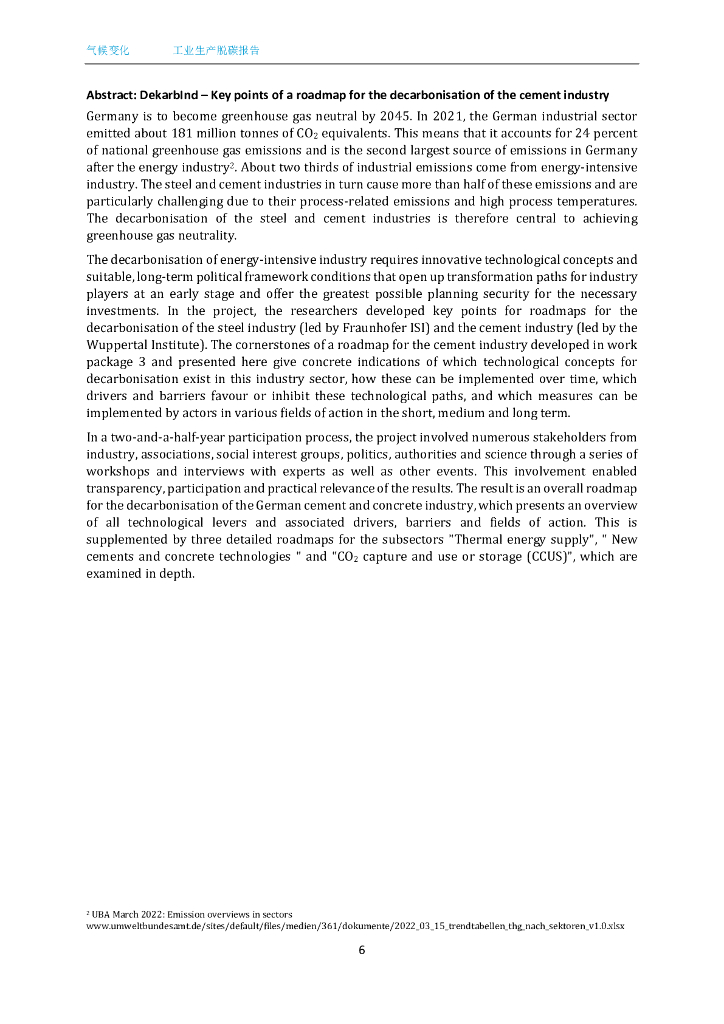 德因联邦环境署 :2022年工业生产脱碳子任务3:评估水泥行业脱碳措施并确定路线图.pdf