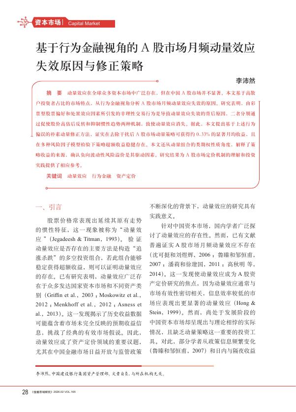 金融市场研究:基于行为金融视角的A股市场月频动量效应失效原因与修正策略.pdf