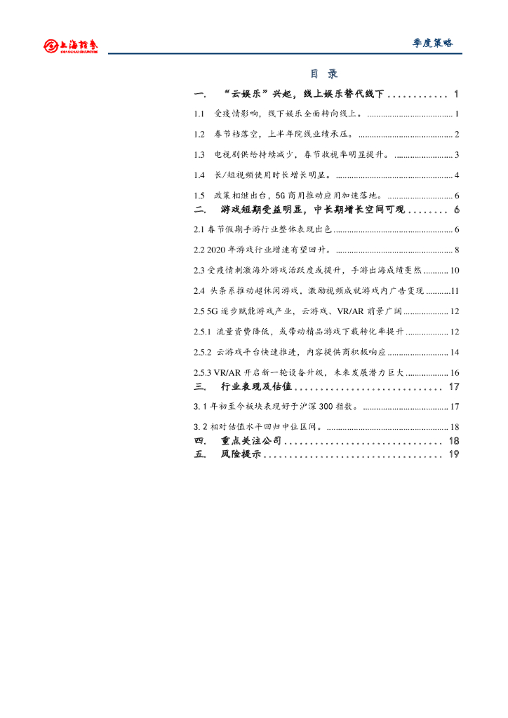 上海证券:2020年文化娱乐行业春季投资策略:在线娱乐景气延续 游戏板块持续受益.pdf