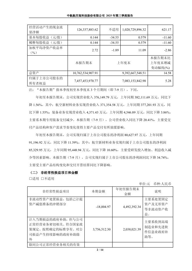 600862-中航高科:中航航空高科技股份有限公司2025年第三季度报告.pdf