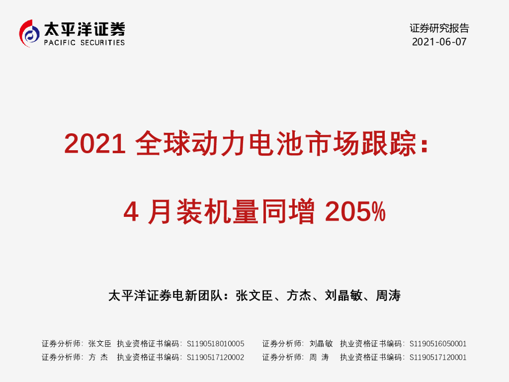 太平洋证券:2021全球动力电池市场跟踪:4月装机量同增205%.pdf
