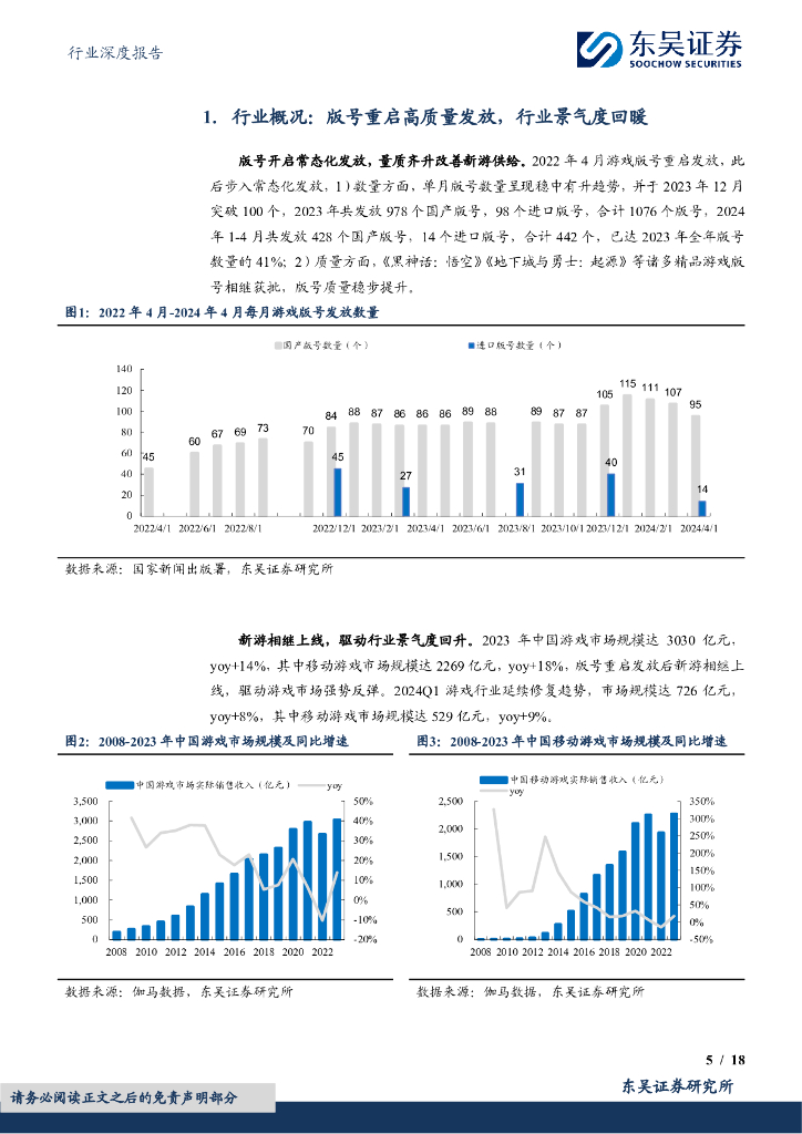 东吴证券:游戏Ⅱ行业深度报告:游戏行业2023年及2024Q1业绩综述:产品周期驱动业绩增长,全方位拥抱AI技术变革.pdf