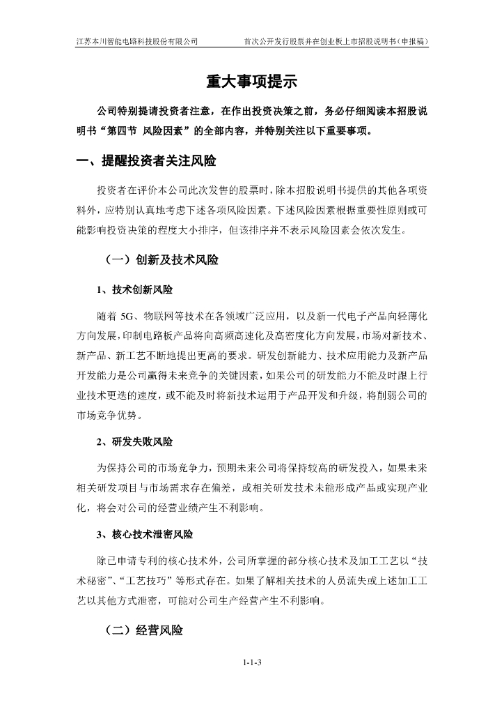 江苏本川智能电路科技股份有限公司深交所创业板IPO上市招股说明书.pdf
