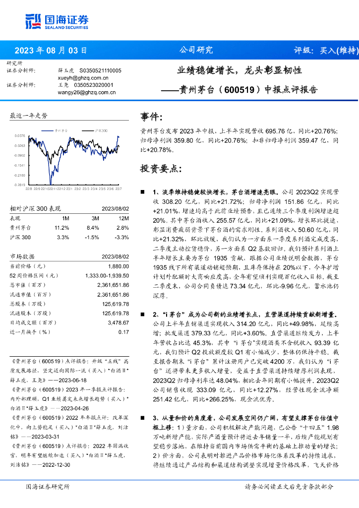 国海证券:贵州茅台(600519)-中报点评报告:业绩稳健增长,龙头彰显韧性.pdf