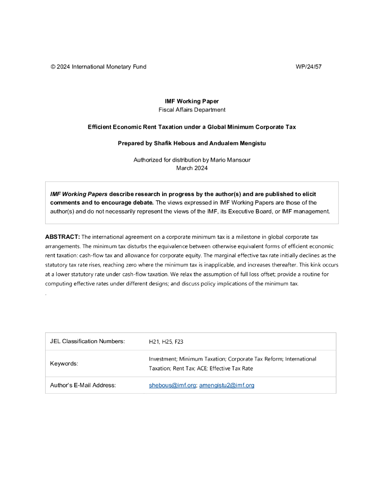 国际货币基金组织:全球最低企业税下的有效经济租金税(英文版).pdf