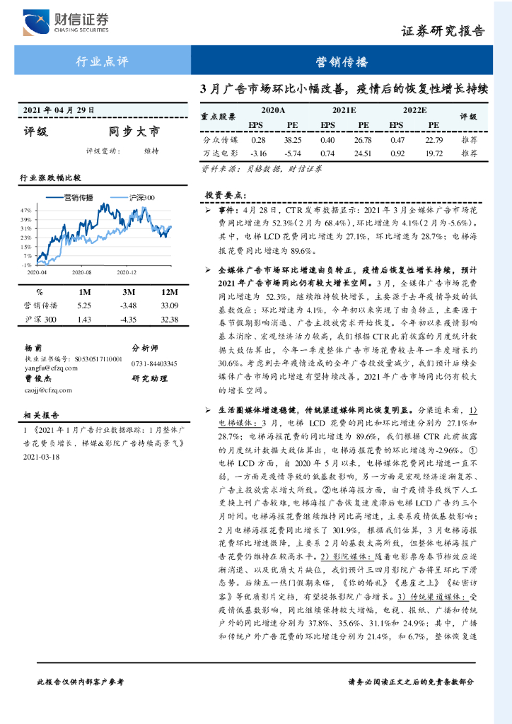 财信证券:营销传播行业:3月广告市场环比小幅改善,疫情后的恢复性增长持续.pdf