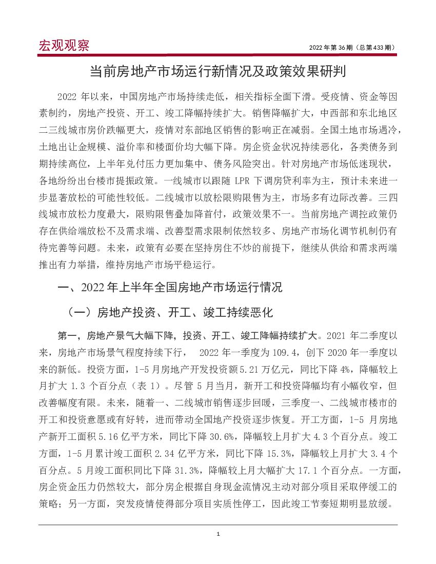 中国银行:宏观观察2022年第36期(总第433期):当前房地产市场运行新情况及政策效果研判.pdf
