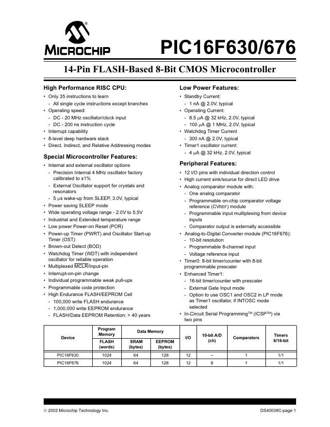 MICROCHIP PIC16F630/676 Data Sheet 数据手册.pdf