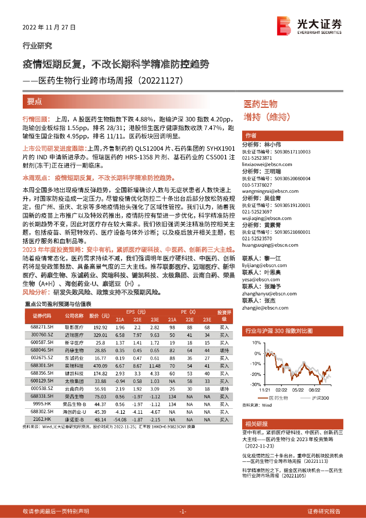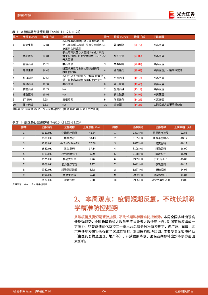 光大证券:医药生物行业跨市场周报:疫情短期反复,不改长期科学精准防控趋势.pdf