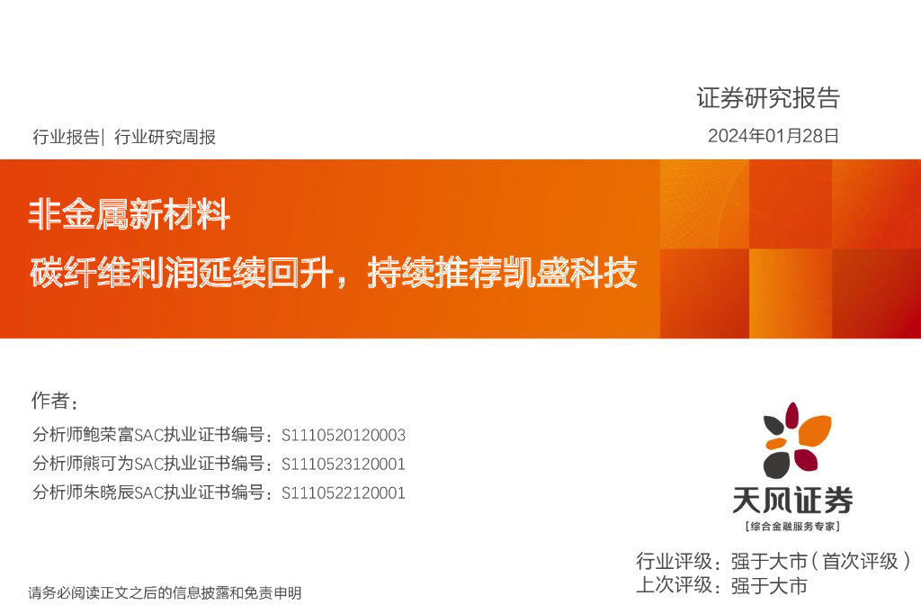 天风证券:非金属新材料行业研究周报:碳纤维利润延续回升,持续推荐凯盛科技.pdf
