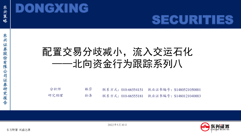 东兴证券:北向资金行为跟踪系列八:配置交易分歧减小,流入交运石化.pdf