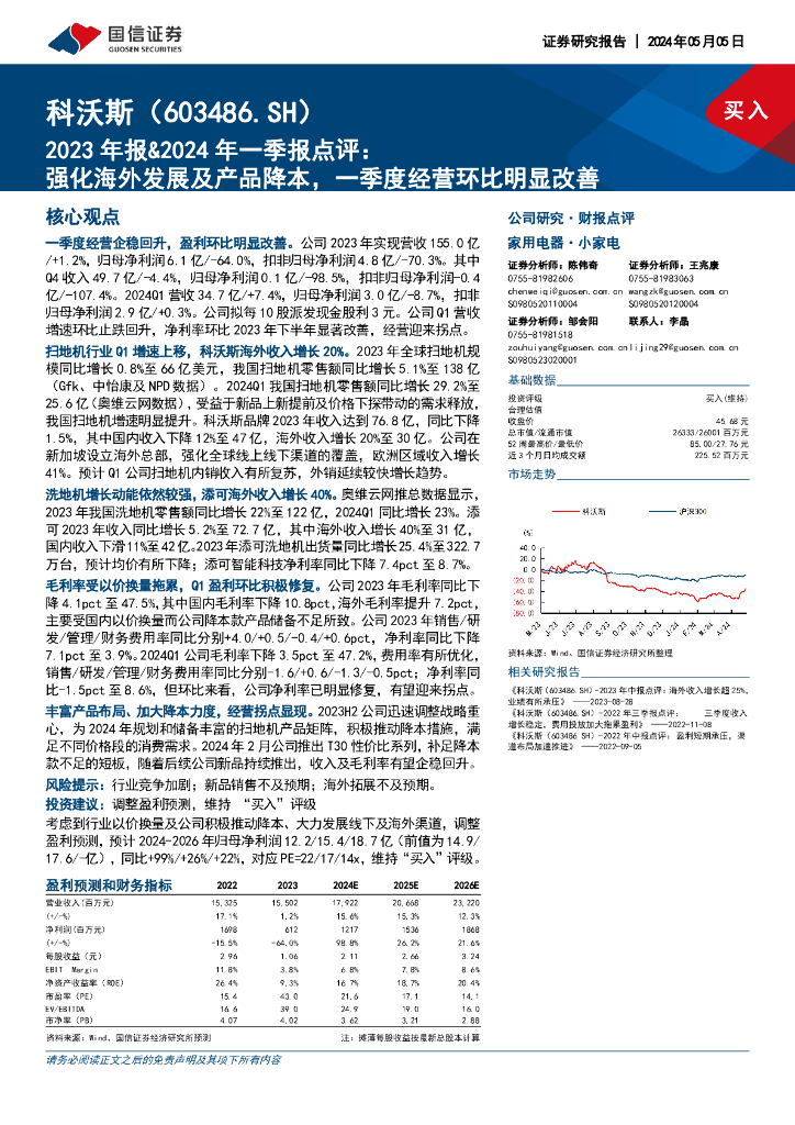 国信证券:科沃斯(603486)-2023年报&2024年一季报点评:强化海外发展及产品降本,一季度经营环比明显改善.pdf
