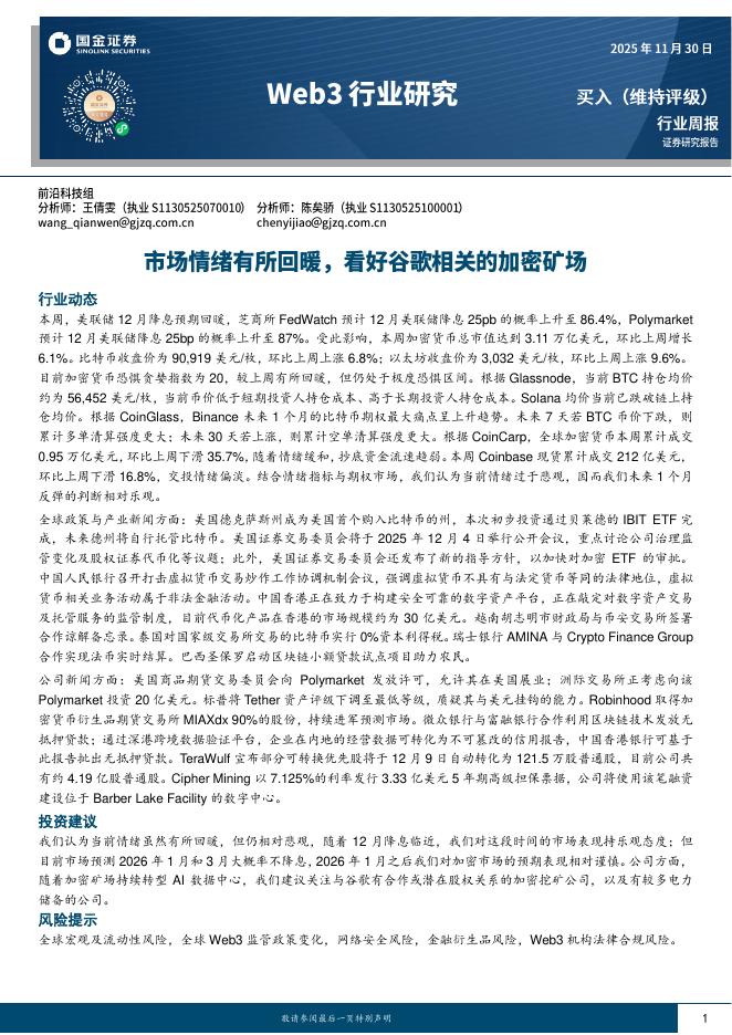 国金证券:Web3行业研究:市场情绪有所回暖,看好谷歌相关的加密矿场.pdf