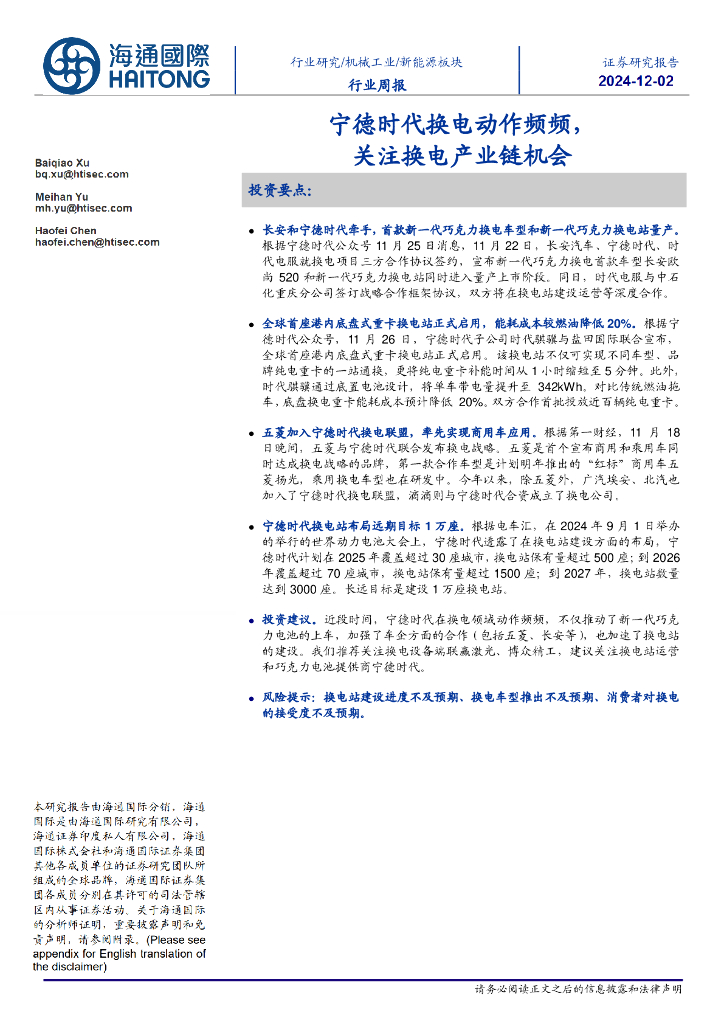 海通国际:新能源板块行业周报:宁德时代换电动作频频,关注换电产业链机会.pdf