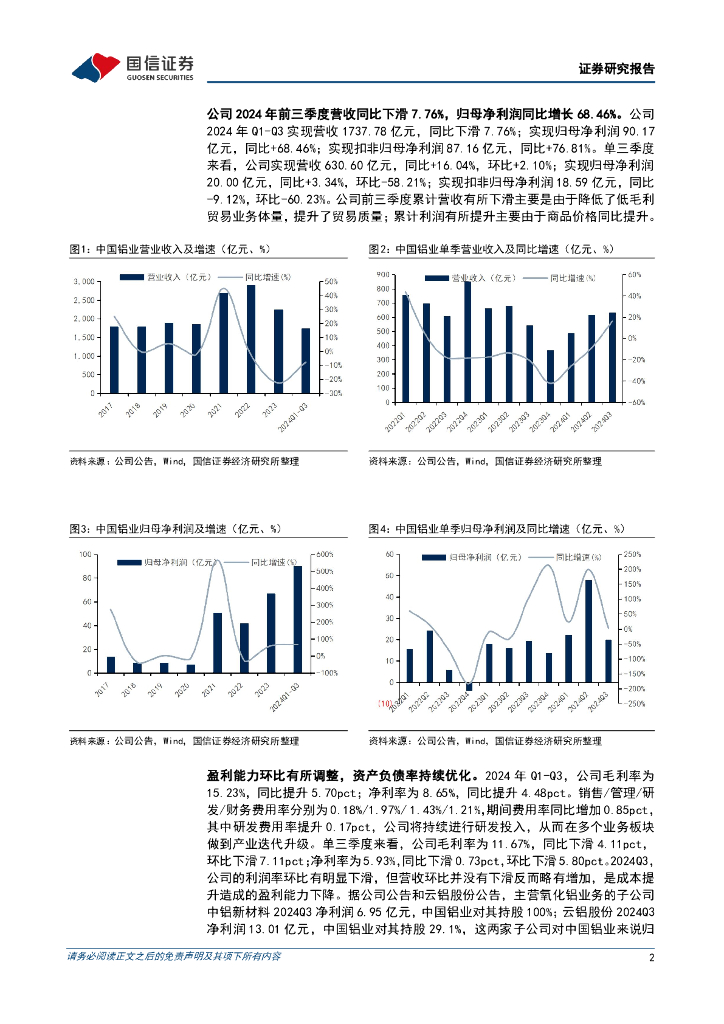 国信证券:中国铝业(601600)-成本增加导致Q3利润环比下滑,主业产量稳中有增.pdf