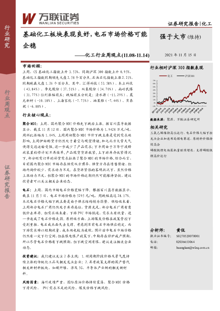万联证券:化工行业周观点:基础化工板块表现良好,电石市场价格可能企稳.pdf