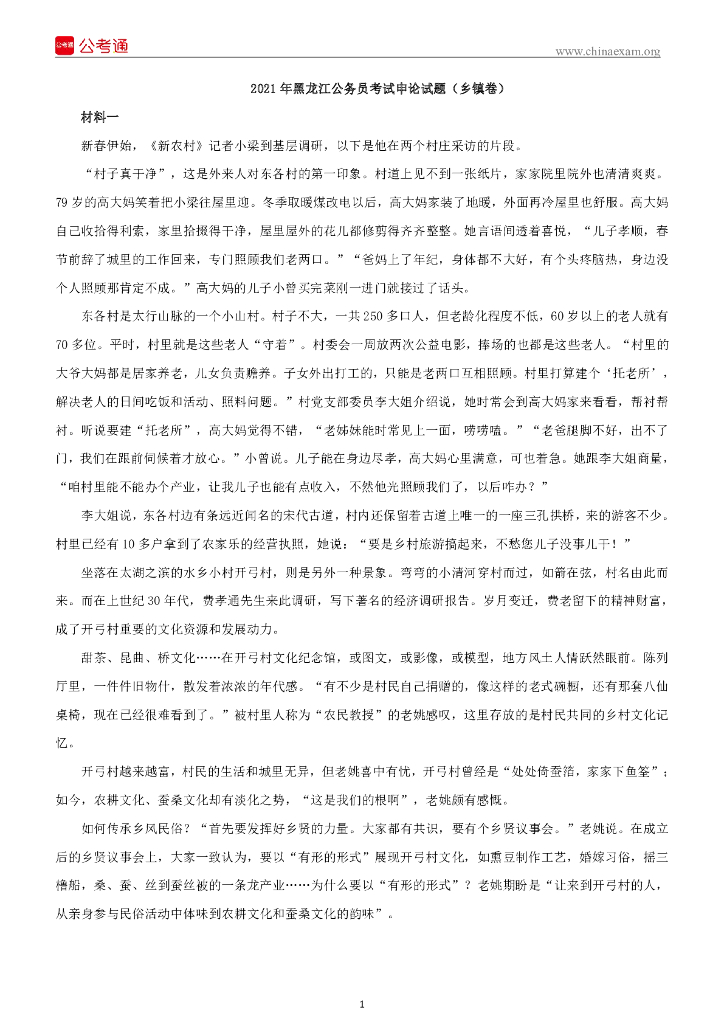 2021年黑龙江公务员考试申论试题(乡镇卷).pdf