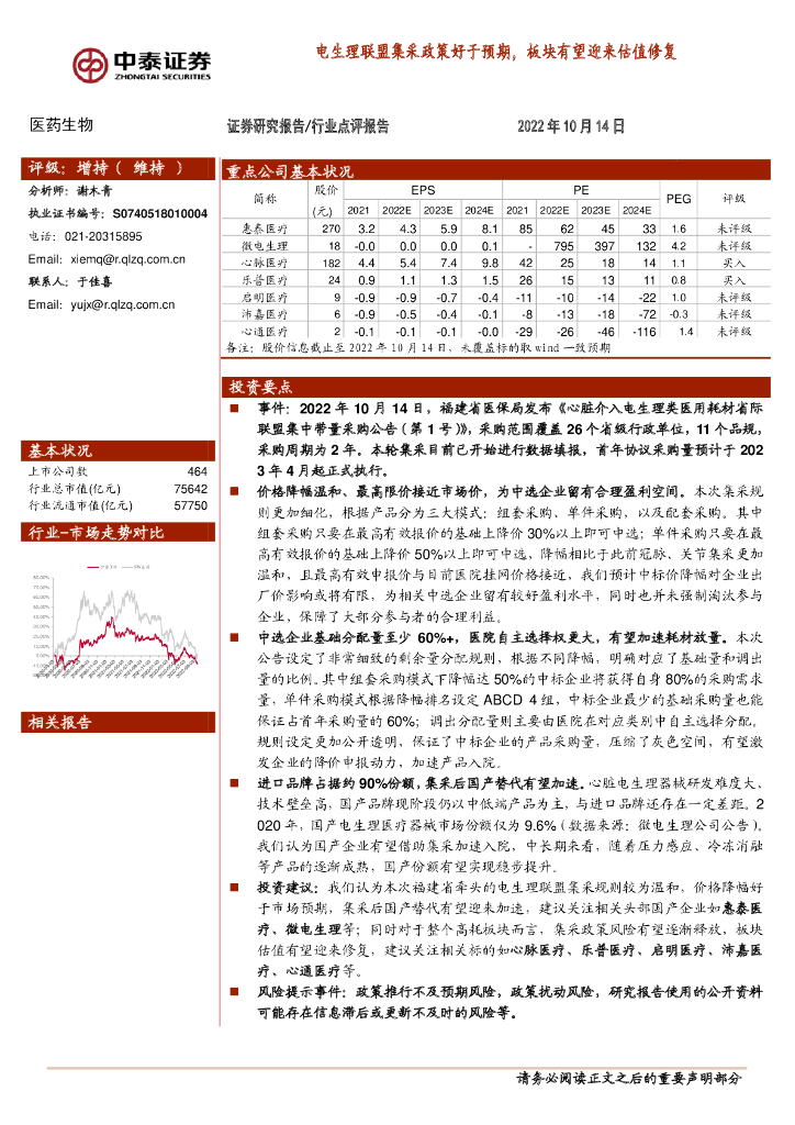 中泰证券:医药生物:电生理联盟集采政策好于预期,板块有望迎来估值修复.pdf