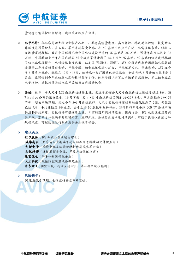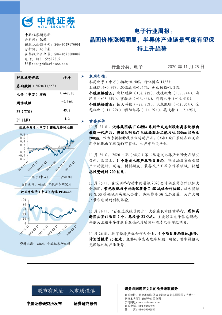 中航证券:电子行业周报:晶圆价格涨幅明显,半导体产业链景气度有望保持上升趋势.pdf