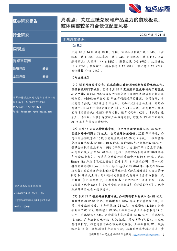 信达证券:传媒互联网及海外周观点:关注业绩兑现和产品发力的游戏板块,整体调整较多符合低位配置风格.pdf