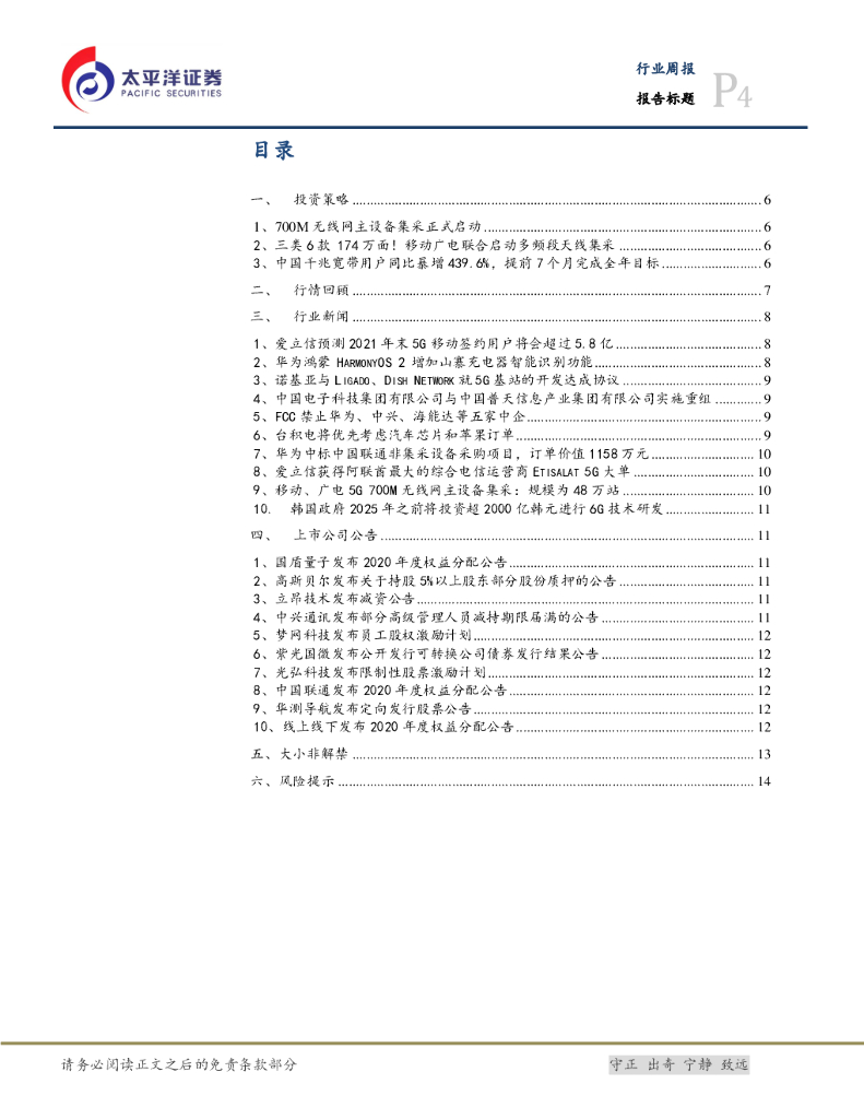 太平洋证券:通信设备Ⅲ行业周报:700M主设备集采正式启动,中兴份额有望超预期.pdf