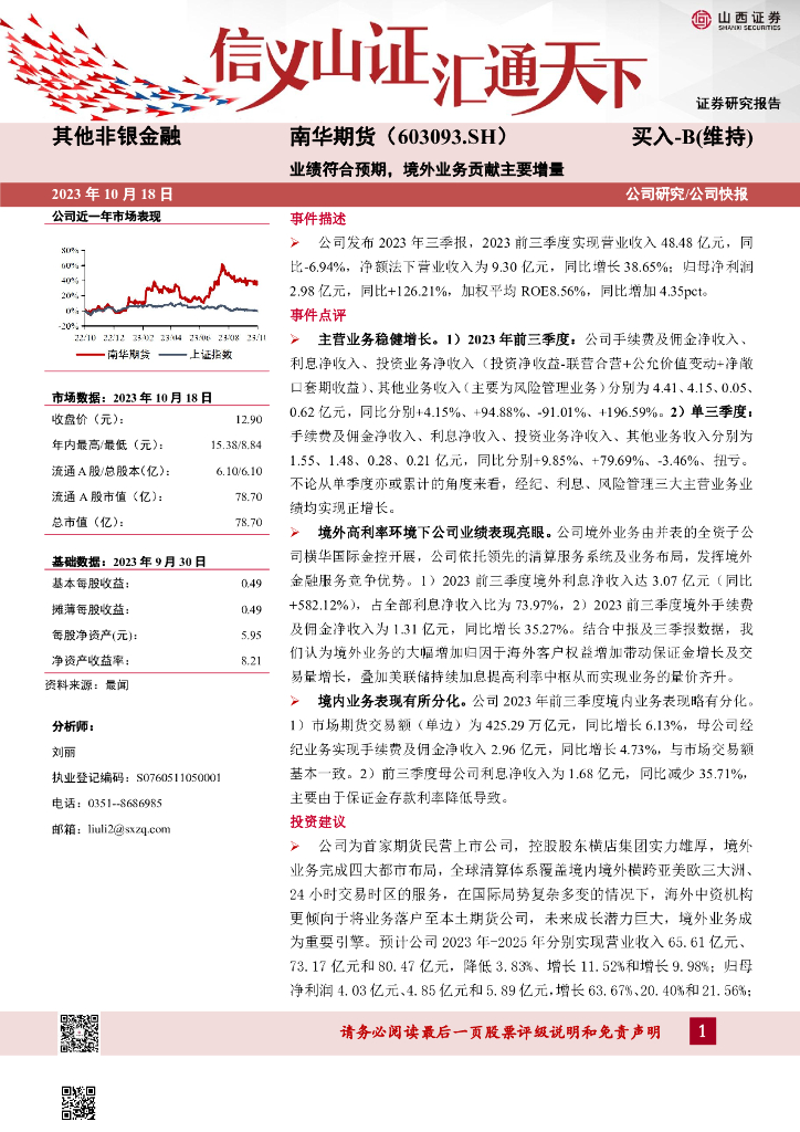 山西证券:南华期货(603093)-业绩符合预期,境外业务贡献主要增量.pdf