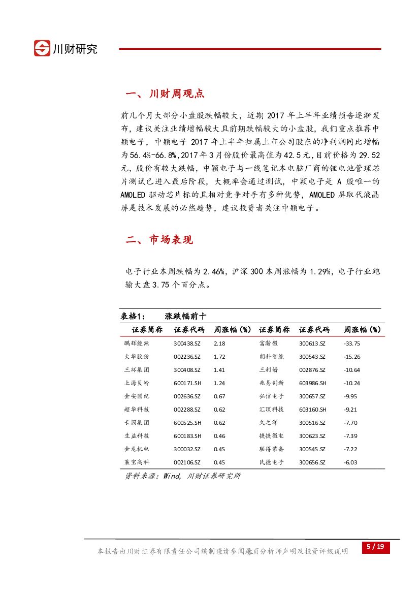 川财证券:电子行业周报:关注业绩增幅较大且前期股价跌幅较大的小盘股.pdf