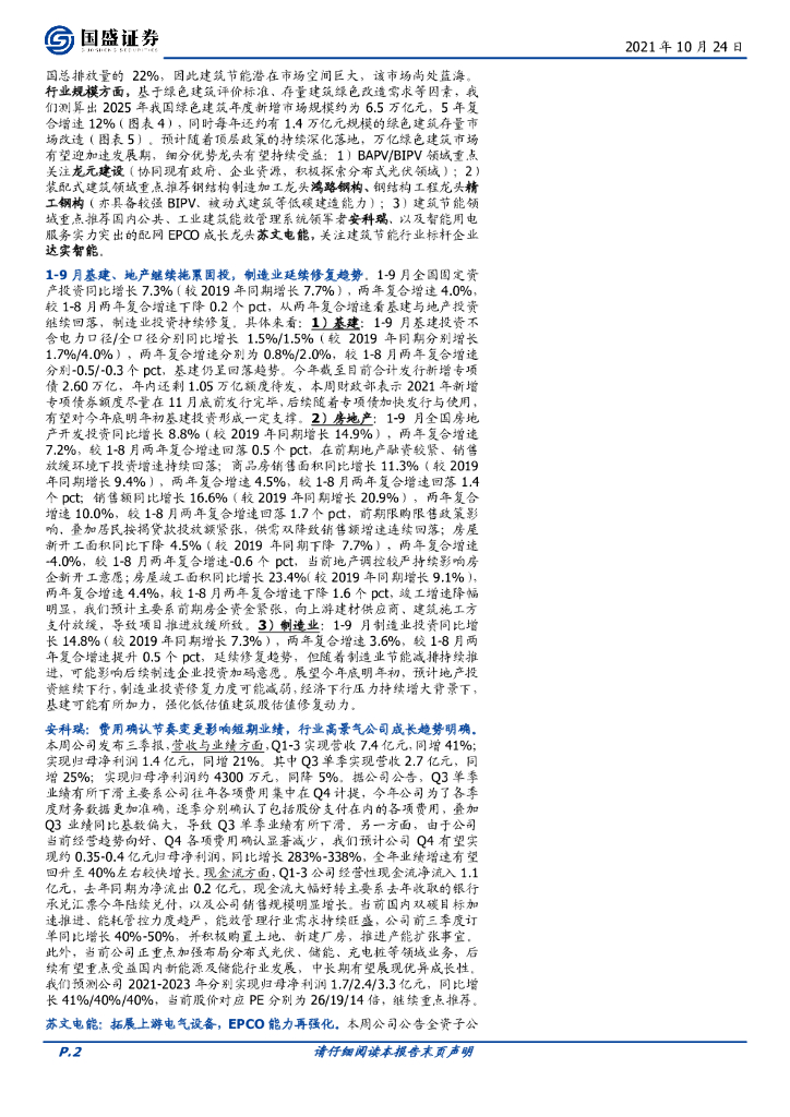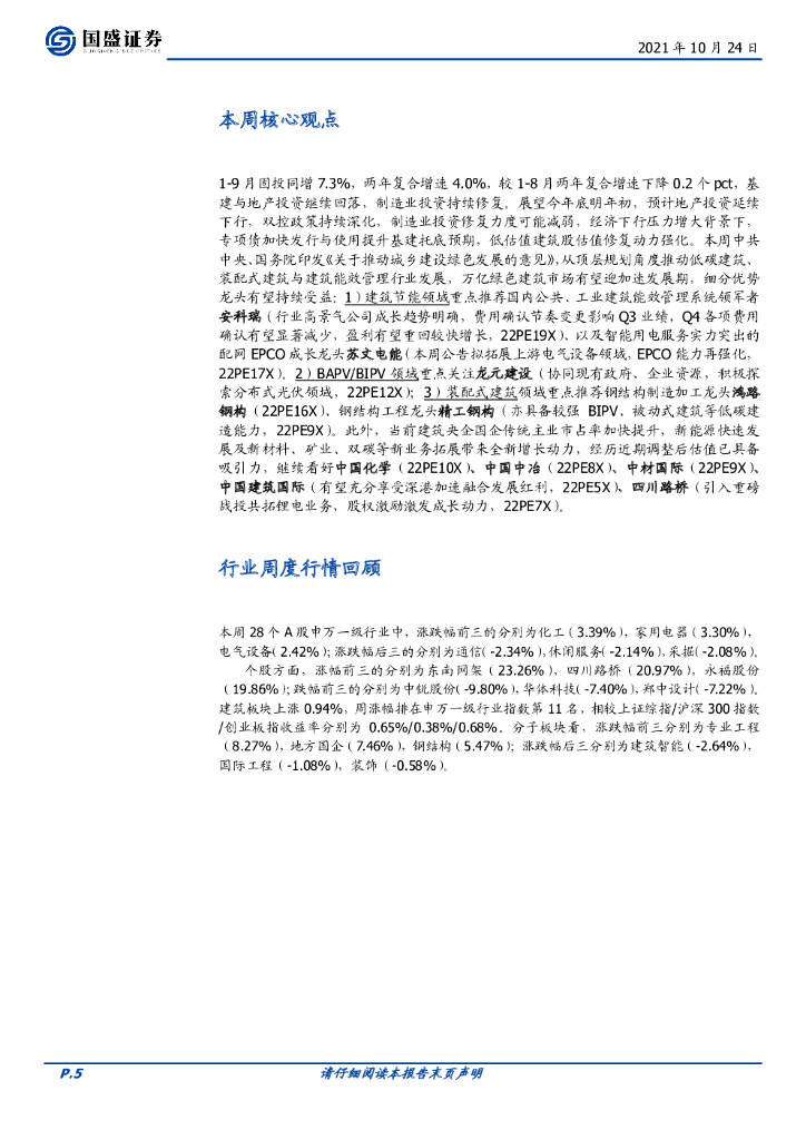 国盛证券:建筑装饰行业周报:顶层规划推动万亿绿建市场发展,重点推荐建筑低碳化龙头.pdf