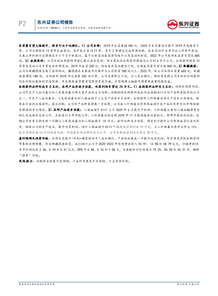 东兴证券:双林生物(000403)-公司半年度财报点评:上半年业绩符合预期,浆源和品种拓展可期.pdf