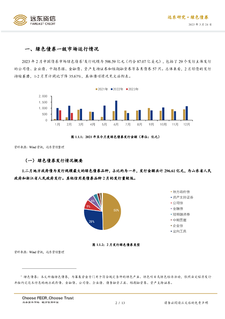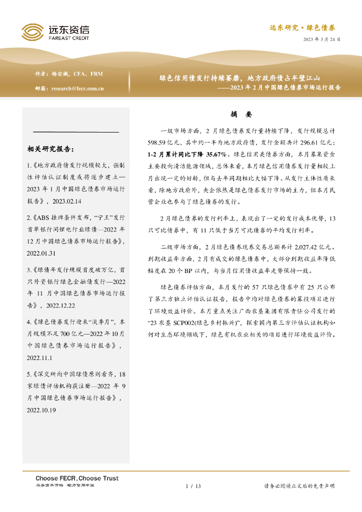 远东资信:绿色信用债发行持续萎靡,地方政府债占半壁江山——2023年2月中国绿色债券市场运行报告.pdf