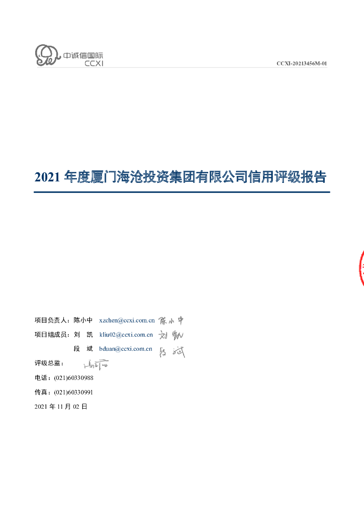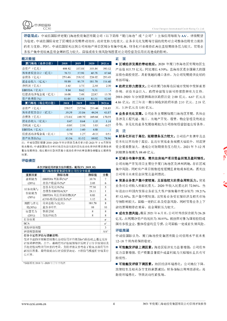 中诚信:2021年度厦门海沧投资集团有限公司信用评级报告.pdf