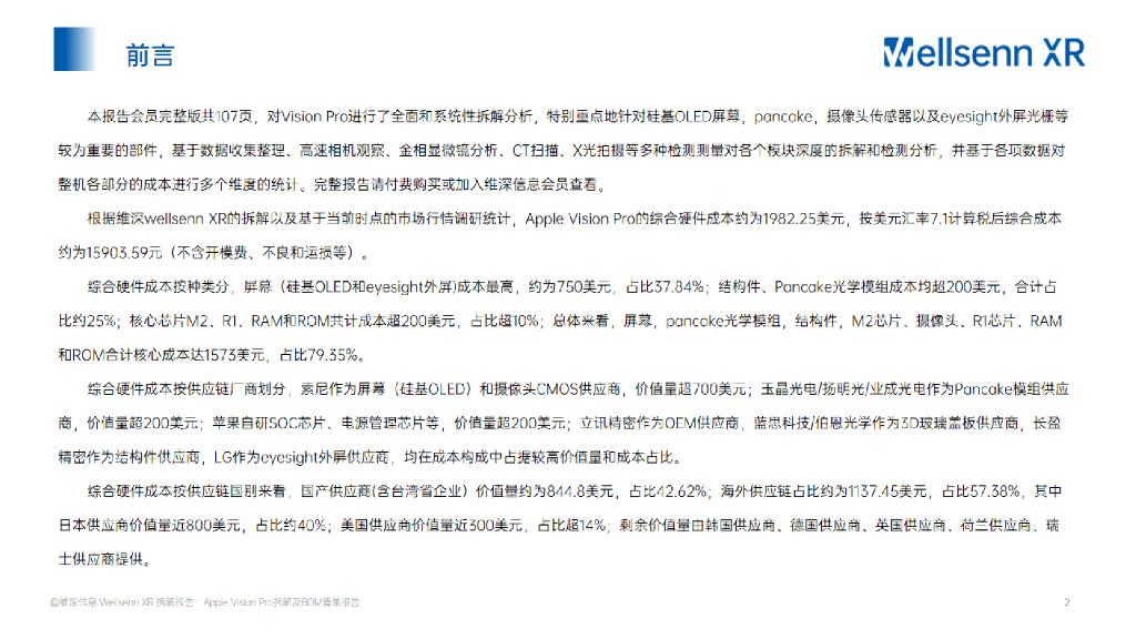维深Wellsenn XR:XR硬件拆解及BOM成本报告-Apple Vision Pro(免费版)(摘要版).pdf
