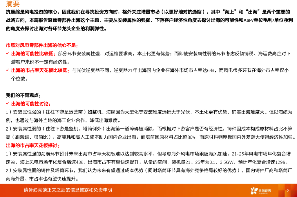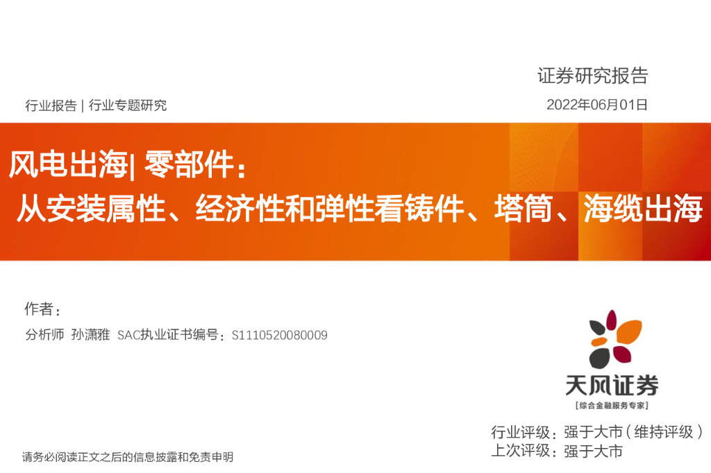 天风证券:风电出海|零部件:从安装属性、经济性和弹性看铸件、塔筒、海缆出海.pdf