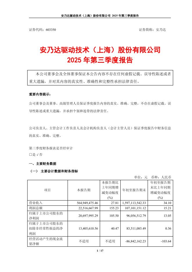 603350-安乃达:2025年第三季度报告.pdf