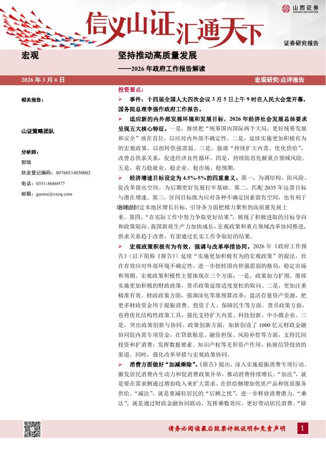 山西证券:2026年政府工作报告解读:坚持推动高质量发展-260306.pdf